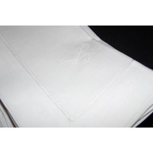 12 PC EMBROIDERY CURSIVE L CLOTH NAPKINS