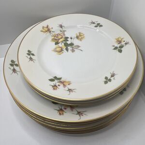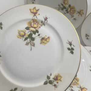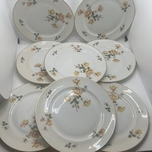 Excellent! Pristine! A fantastic set! 3 beautiful 6” bread plates, one 5” tall creamer and 8 salad/luncheon plates. Yellow rose pattern is gorgeous! Buy with confidence— these are great! Zoom in! No chips cracks or crazing! A fantastic set!