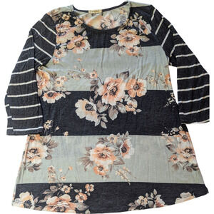12 PM By Mon Ami Women's Floral Striped 3/4 Sleeve Top, Blue, Size Medium