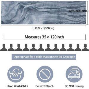 🧿Soft Material: Made of high quality polyester, soft to touch, comfortable and long-lasting. Wrinkled design cheese cloth farbic, delicate edges and stitches, adopts seamless technique makes this sheer table runner more graceful than traditional fabrics. The boho wedding table runner is sheer, natural drape, lightweight and skin-friendly. Soft table linen with gorgeous finished edges drapes gracefully across your banquet table.