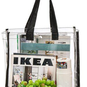 Features: A set of 12 large, see-through tote bags made from sturdy, waterproof PVC. They're lightweight yet durable, with reinforced handles for easy carrying heavier loads. These totes make security checkpoints a breeze and help you find your essentials quickly—great for work, gym, beach days, or festivals.