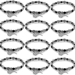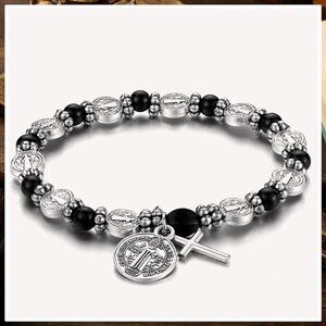 Features: This set includes 12 unisex stretch bracelets made from sturdy zinc alloy, featuring religious saint benedict medals for protection and good luck. The beaded chain design is simple yet eye-catching, perfect for daily wear or as a thoughtful gift. Fits most adults comfortably without being tight or loose.