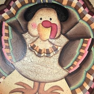 While out thrifting for clothing, I came across this cute painted turkey bowl. Origin and materials are unknown. It's definitely got a "vintage" vibe but I am unsure. It may also be hand painted so I certainly wouldn't use it to serve food or even wash it with the dishes, quite frankly. I was just attracted to this awesome cute turkey bowl so I paired it with a secure stand and I'm offering it up for sale. 12" in diameter & 5" deep.