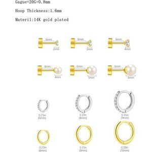 12 Pairs Gold & Silver Hoop, CZ, and Pearl Stud Earring Set Minimalist Style