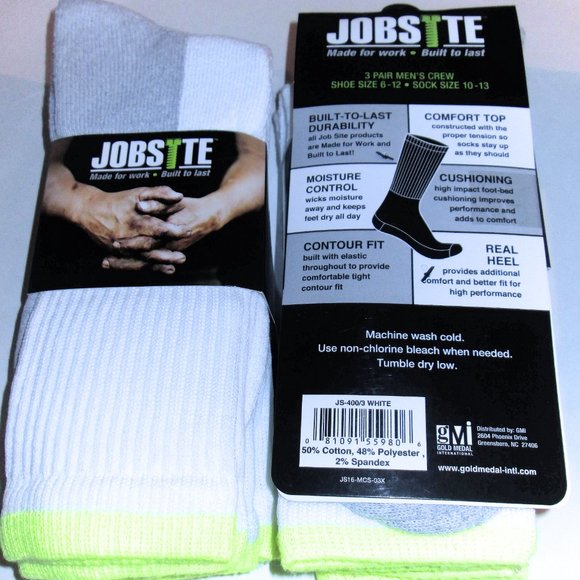 12 Pairs Mens Jobsite Moisture Control Comfort Top Cushioned White Work Cr…