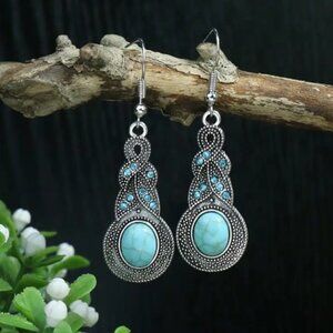12 Pairs Turquoise Boho Tribal Geometric Earrings