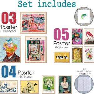 SET INCLUDES: Three 8x10 quirky prints, four 5x7 prints, and five 4x6 prints are available. You don't need to buy frames to hang our eclectic wall art set because 48 sticky dots are included.