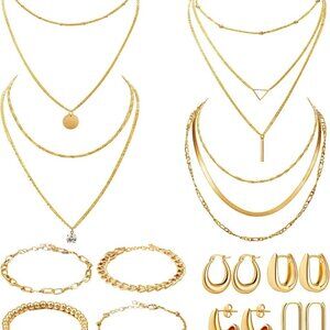 12 Pcs Gold Silver Jewelry Sets for Women Layered Set of Earring Necklace Bracel