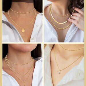 Multiple Sizes to Choose from: the small gold hoop earrings offer 3 sizes, including about 0.55 inch, 0.79 inch and 0.98 inch; The gold necklaces for women trendy also come in 3 sizes, namely about 13 inches + 2 inches extension, 15.7 inches + 2 inches extension, and 20 inches + 2 inches extension, adjustable to fit most women; The stackable bracelets for women area about 6.2 inches + 1.96 inches extension, easy to put on or take off