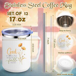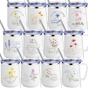 12 Pcs Religious Coffee Mugs 17 oz Insulated Leak Proof with Lid and Straw