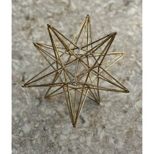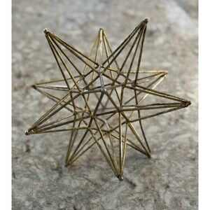 12 Point Metal Art Steel Star Gold Tone Sphere Sculpture Table Top Decor 9” Span