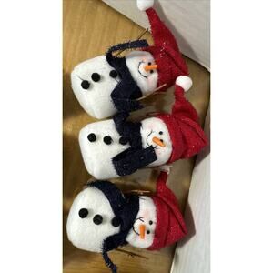 12 Puffy Felt Snowmen Christmas Ornaments Dressed In Hats/ Scarves W/ Twig Arms