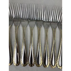 Retroneu GOLD ACCENT Chain 7 3/4 dinner fork 18/8 Korea Stainless Flatware-Great Quality. Preowned. Normal scratches from normal use might be seen These are great quality and very pretty. I have the whole dinnerware sets please check my other listings if you are interested thank you
