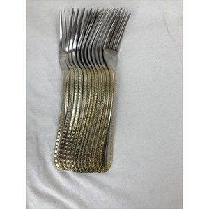 12 Retroneu GOLD ACCENT Chain 7 3/4” 18/8 Korea Stainless Dinner Fork Quality