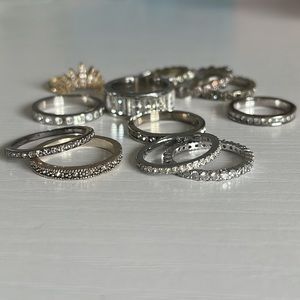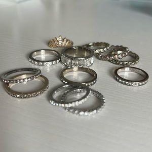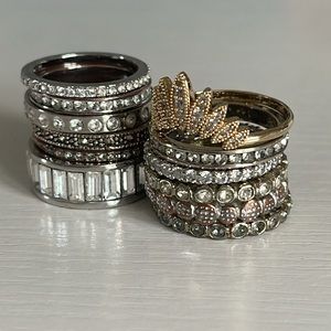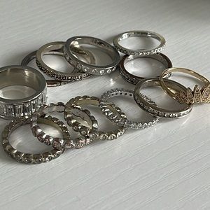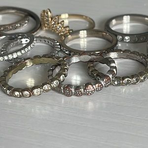 I’m pretty sure these are all from Chloe & Isabel however, only two of them have a marking. The size guesstimate is 7 to 8. And maybe a 6. There are signs of wear on some of them. If you need more pictures let me know. I will not sell them separately. I don’t know the names of the rings or from what collection.