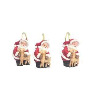 12 Santa Claus Bath Shower Curtain Hooks Resin Hand Painted 4 Different Poses