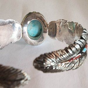 Sedona Sky Turquoise Cuff Bracelet Signed BGE Expandable. Looks to be Sterling Silver but it doesn't say it or shows on the acid test. (I think it is silver but it does not say silver so it is sold as silver-toned.