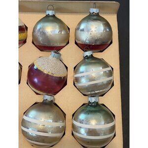 12 Shiny Bright Christmas Ornament Mica 2 " Mercury Glass Some Matching With Box