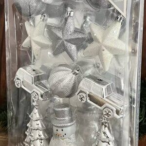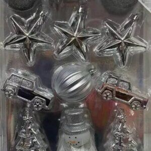 12 Silver Shatterproof Christmas Tree Trimming Ornaments Assortment