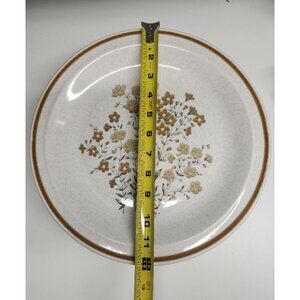 Colorstone 12" round stoneware chop plate dish. Round serving platter in a retro neutral color scheme with foral clusters in the center. Very good condition, no chips, cracks or crazing.