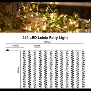 12 Total 240 LED Curtain String Lights Fake Plant, Rattan Hanging Garland