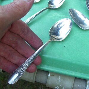 12 VINTAGE SILVERPLATE Wallace SWEETHEART Teaspoons Silverplate 1946 NICE