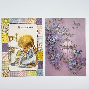 Bundle of 12 original A Sunshine Card vintage greeting cards from the 1970s–1980s. These charming mini cards feature soft illustrations and sentimental messages perfect for collectors, junk journaling, or sending a retro hello.