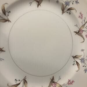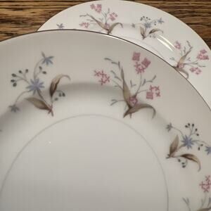 12 dessert/ bread plates in pristine, excellent condition. From Meito, Japan. I believe this pattern was produced in the 1960s. It is now discontinued. The floral pattern is dainty and delicate, and rather unique with a minimalist flair with lovely gold trim and detailing. These would complement many other china patterns. No chips or cracks, these are just beautiful. 6 1/2 inches across.