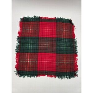 12 Vintage Red Green Knit Plaid Christmas Napkins Rag Fringe Metallic Sparkle