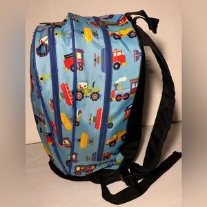 12" Wildkin Olive Kids Backpack Trains Planes Trucks Daycare School Bag *Great*