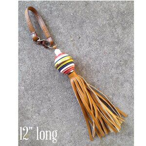 12 inch Brown Leather Multi Color Fossil Tassel Keychain Purse Charm Keychain