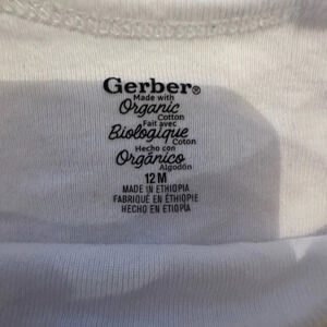 This is a white Gerber onesie size 12 months. Has a custom vinyl design of a reindeer with a red glitter nose. Onesie is in excellent previously owned condition and from a smoke free home.