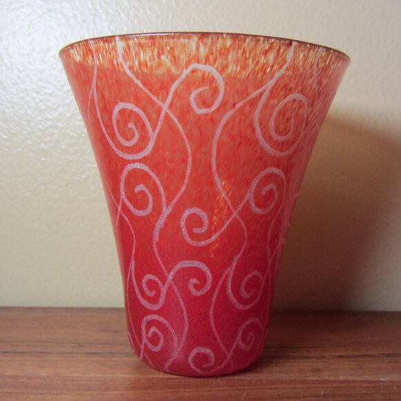 12 oz toyo sasaki art glass tumbler vase curly-q's RED (W5520)