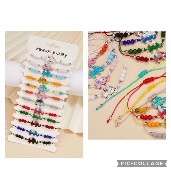 12 pc Elephant pull string bracelets