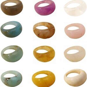 12 pcs Colorful Resin Rings Wide Thick Dome Knuckle Finger Stackable Joint Ring
