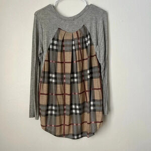 12 pm by Mon Ami Gray Long Sleeve with Plaid Back. Size M / Medium. Never worn. Hand wash.
