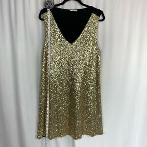12 pm by Mon Ami Gold Sequined dress Women’s Large A-Line Loose Fit Mini Short