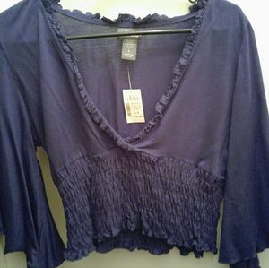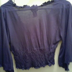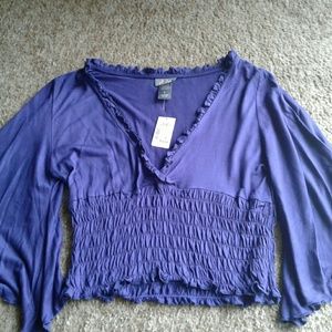 NWT never before worn purple 1/2 sleeve top. Flowy sleeves. I would say shirt can maybe fit as a crop top or comes down to the waist...I guess it depends on who's wearing it. It is 17.5 inches in length if that helps.