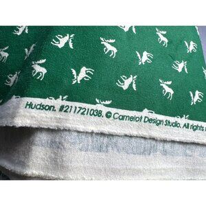 1/2 yard x 44" Green Cotton Fabric with White Moose Flannel Print by Camelot Des