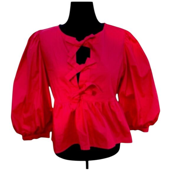 120. JODIFL L.A. | NewWithTag bow puff sleeve ruffle summer spring blouse SZ:L