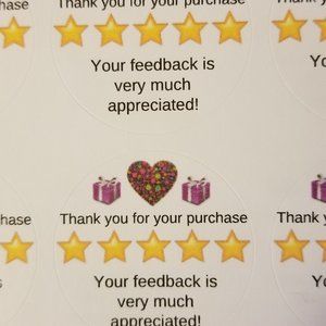 1.5" Round Matte White Labels w/"Thank you for your purchase - Your feedback is very much appreciated!"