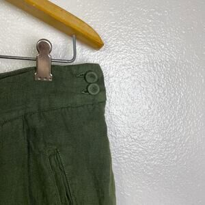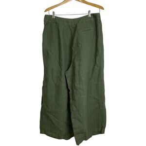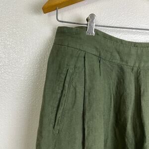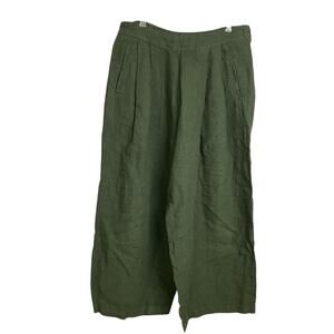 120% Lino Green Wide Leg Linen Pants Pleated Button Crop 24" Womens EU 48 NWOT