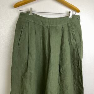 This listing is for a pair of 120% Lino Womens Wide Leg Linen Pants. Green. Pleated front. Pockets. Button closure at the side waist. Bulgaria.