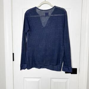 120% Lino Linen Navy Blue Top Womens Long Sleeve Lagenlook NO SIZE TAG READ