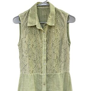 120% Lino Midi Dress - Italian Linen - Green Lace - Size Small