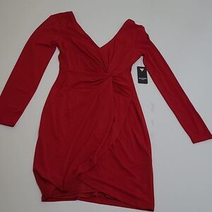 $120 NEW GUESS SEXY RED STRETCH JERSEY LONG SLEEVE LINED DRESS 4 SMALL NWT