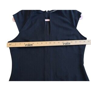 This Neiman Marcus Women's Black Stretch Cap Sleeve Sheath Dress in size Medium is a versatile and stylish option for various occasions. The dress features a V-neckline, short cap sleeves, and a zipper accent. Made from a comfortable polyester blend jersey fabric, it offers a flattering sheath silhouette with added stretch for a comfortable fit. Whether for a party, casual outing, or business event, this dress is a classic and timeless choice for any woman's wardrobe.