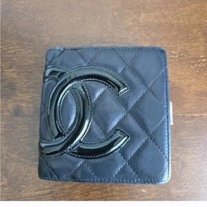 $1200 Authentic Chanel Calfskin Wallet BiFold Quilted Leather Black Coin Pocket