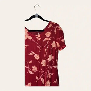 1201. VINTAGE THE J. PETERMAN COMPANY 100% SILK FLORAL RED/GOLD COLOR MAXI