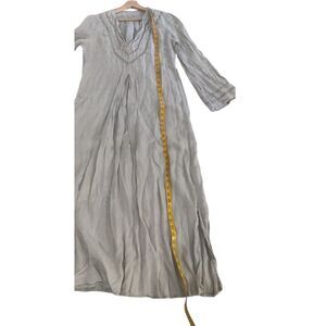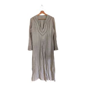 120% Lino Elegant Gray Linen Long Sleeve Maxi Dress Size 42 Italy M